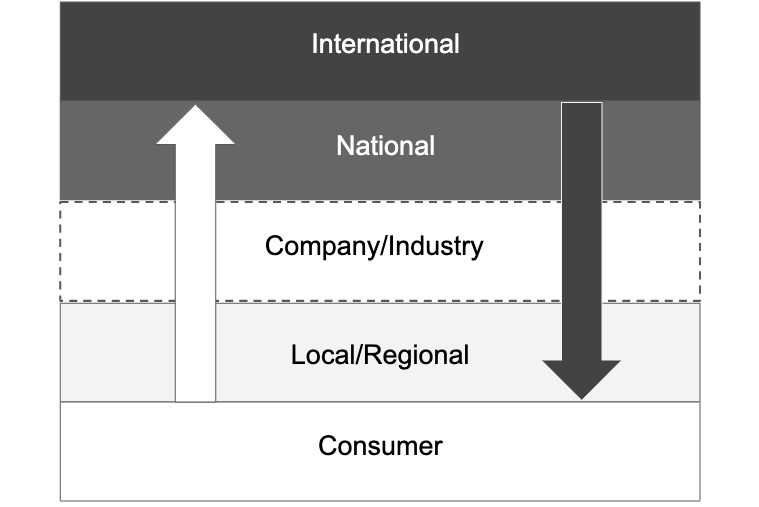 1- Consumer context; 2- Local/Regional context; 3- National context; 4- International context